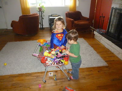 After 2 hour preschool the friends go home and Emmett returns. The kids play together while I make lunch.